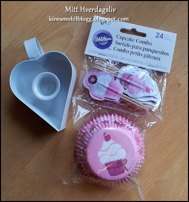 En liten hjertelysestake og cupcakesformer med sånne dingser til å ha nedi, (husker rett og slett ikke hva det heter akkurat nå hehe)